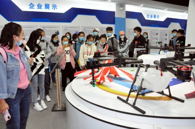 在子園區(qū)產(chǎn)品展廳,同學(xué)們被展臺(tái)上的多旋翼植保無(wú)人機(jī)、取苗機(jī)械手、栽植機(jī)械手等產(chǎn)品吸引了注意力,紛紛拿起手機(jī)對(duì)著展臺(tái)拍起照來(lái)。子園區(qū)河南科技大學(xué)·大學(xué)科技園工作人員介紹了河科大師生創(chuàng)新企業(yè)、團(tuán)隊(duì)的研發(fā)成果及市場(chǎng)應(yīng)用情況,同學(xué)們聽(tīng)后連連贊嘆。